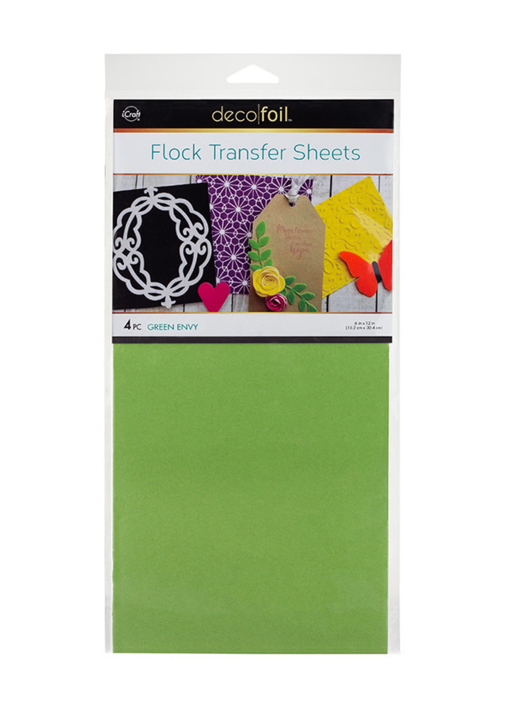 Get envious results with the Green Envy Deco Foil 6" x 12" Flock Transfer Sheet 4 Pack from iCraft. There are four Therm O Web transfer sheets included that can be used on fabric and paper with Deco Foil adhesives to add beautiful color to any project.